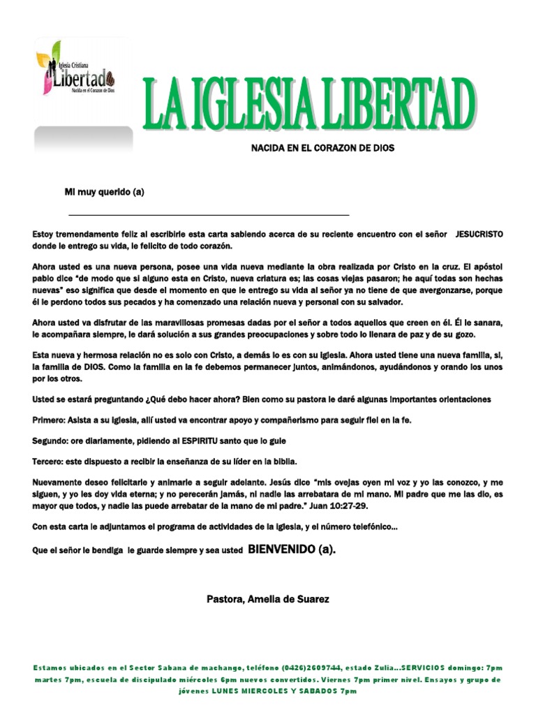 Carta De Bienvenida Ala Iglesia Libertad via www.scribd.com